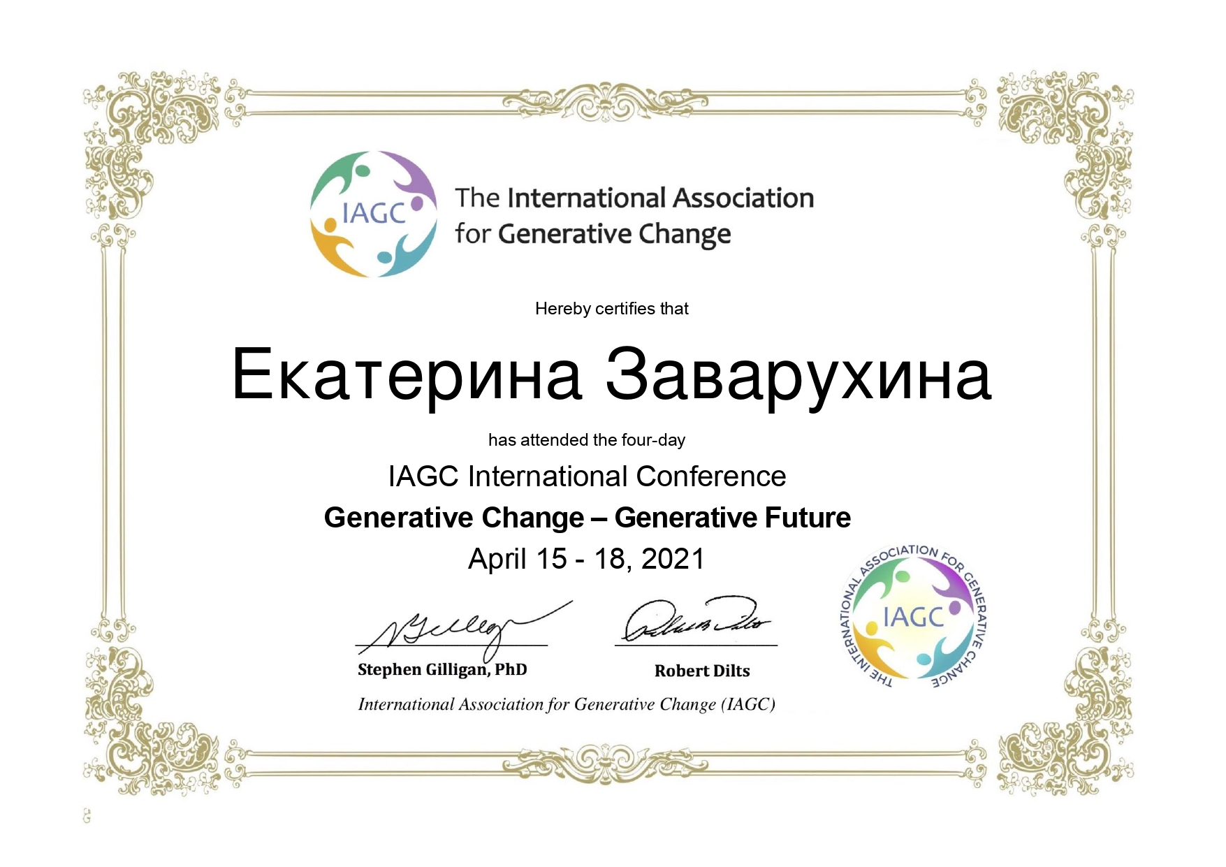 Единственный в Перми тренер НЛП, имею международный тренерский сертификат НЛП от первой леди НЛП - Джудит ДеЛозье и одного из основателей НЛП - Роберта Дилтса (США, Калифорния);