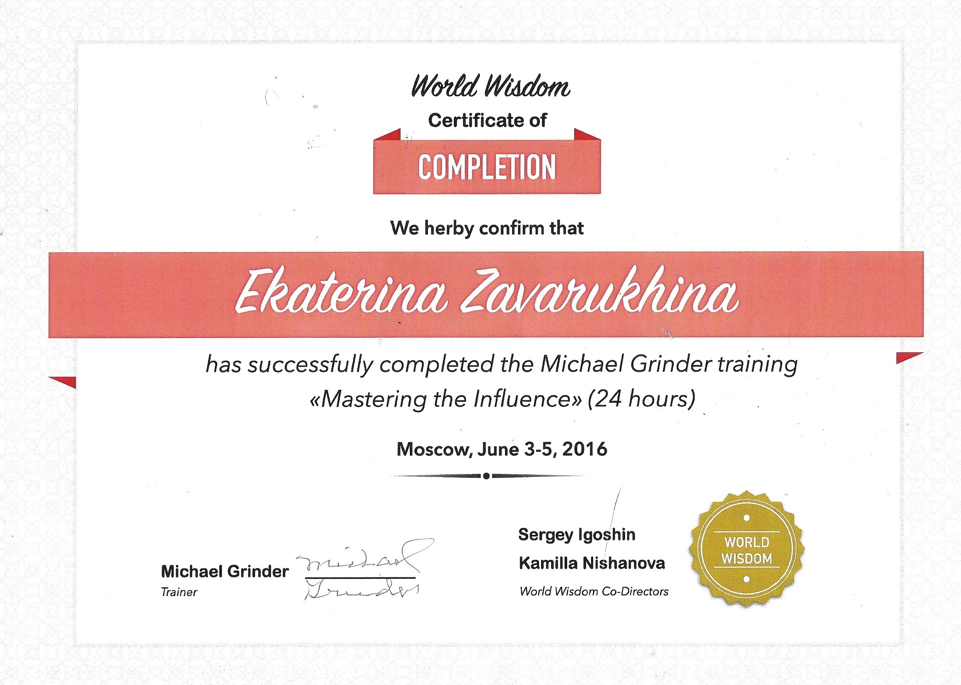 Попала к Кате случайно и не перестаю благодарить судьбу за эту встречу. Я очень долго искала такого профессионала, который не стремится заработать на клиенте, а искренне и от души хочет и может помочь. Богатейший багаж знаний от первоисточников и личный опыт - это потрясающий симбиоз, дающий великолепные результаты. Катя делает главное, ради чего мы обращаемся к коучам и тренерам, - она меняет внутреннее состояние, ну а за ним меняется и вся жизнь. Если это то, что вы искали также долго, как и я, записывайтесь на курс. Он приведет вас к Успеху.
